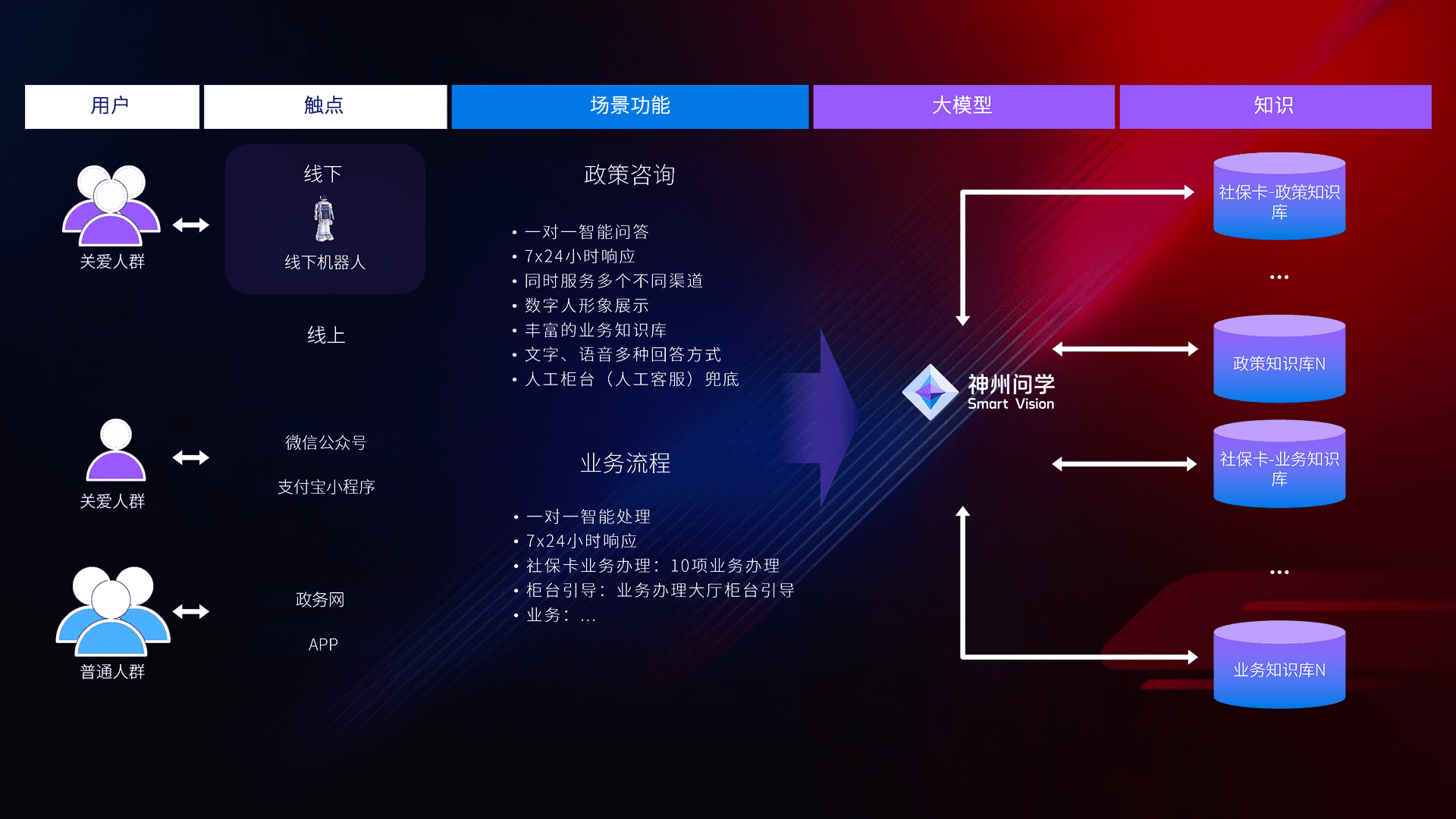 在服务大厅部署客服机器人,,,在线上应用和小程序配置客服数字人,,,,724小时为群众解答常规问题,,客服机器人无法处理的,,,转现场人工处理。。。